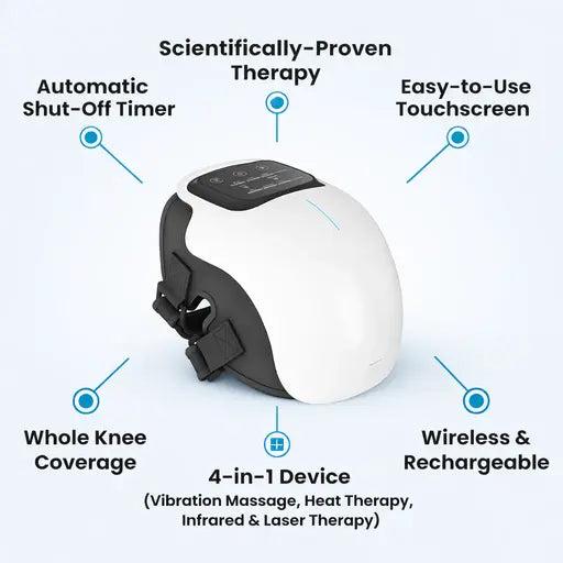 Using a powerful combination of soothing heat, gentle vibration, and red light therapy, this knee massager targets discomfort deep within the joint. It helps reduce everyday pain caused by strain, injury, or ongoing conditions—supporting improved comfort, flexibility, and mobility.